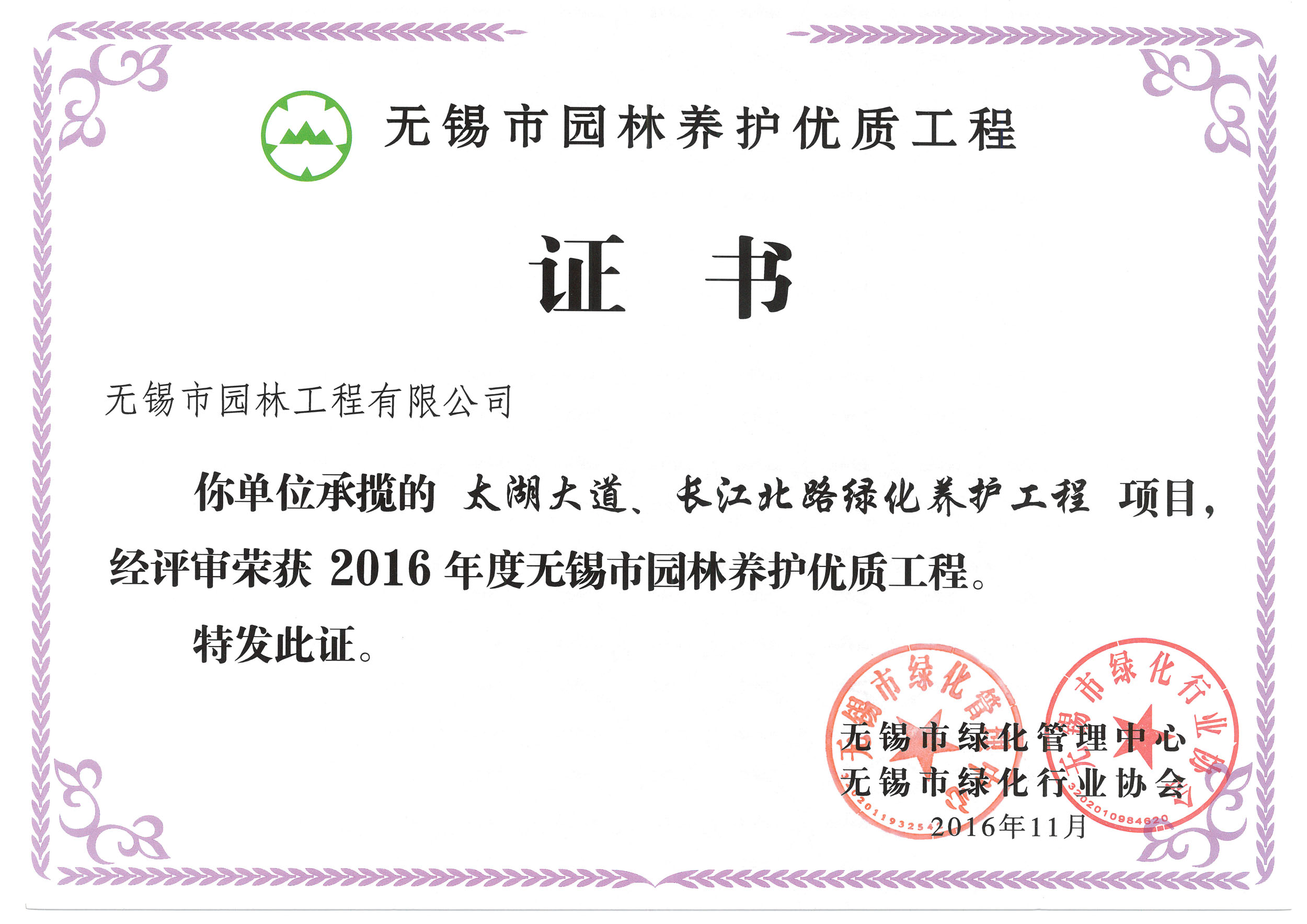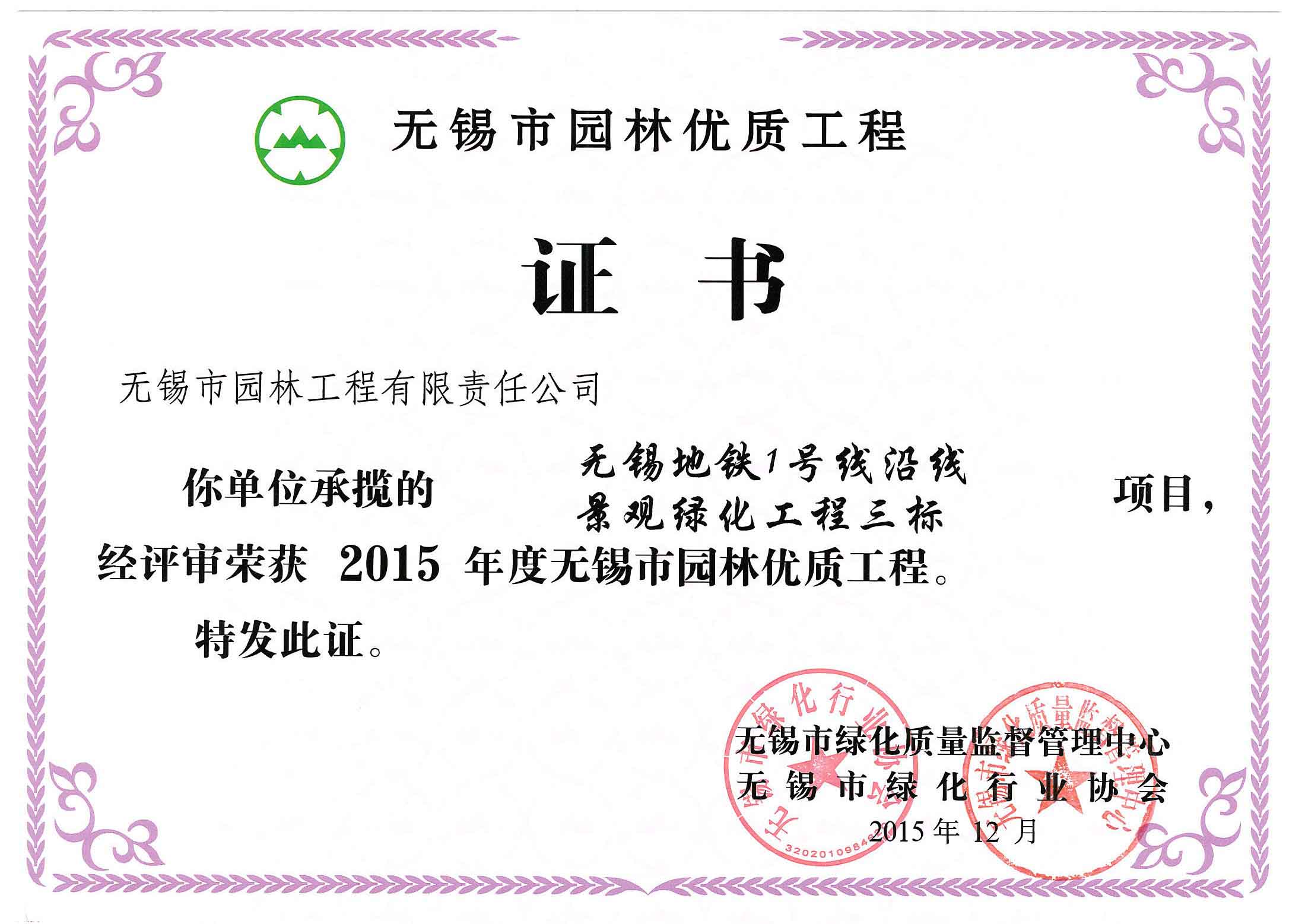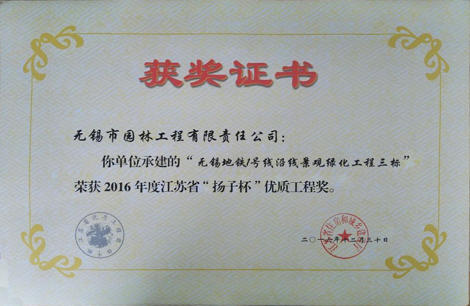 2016揚(yáng)子杯——無錫地鐵1號線沿線景觀綠化工程三標(biāo)