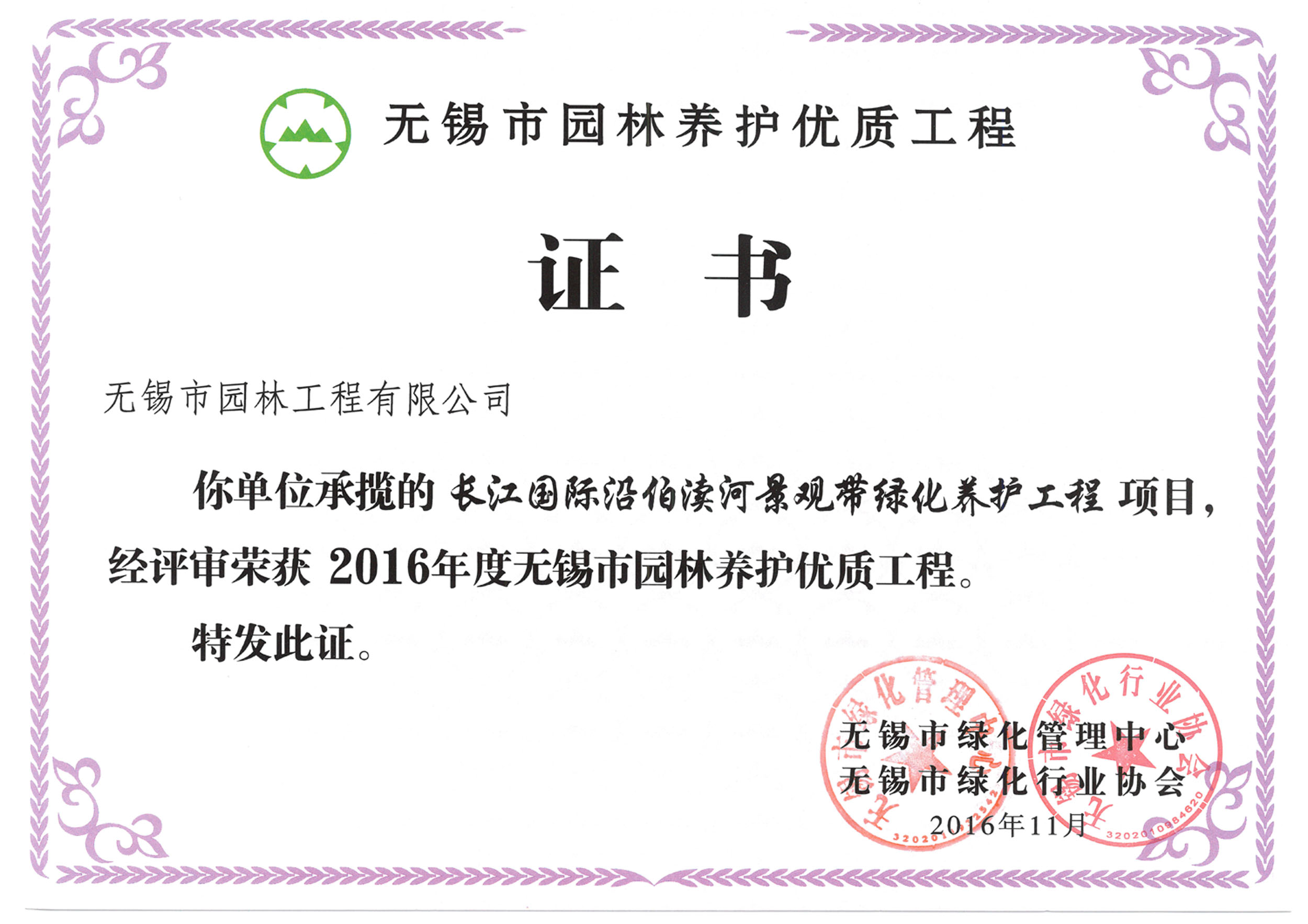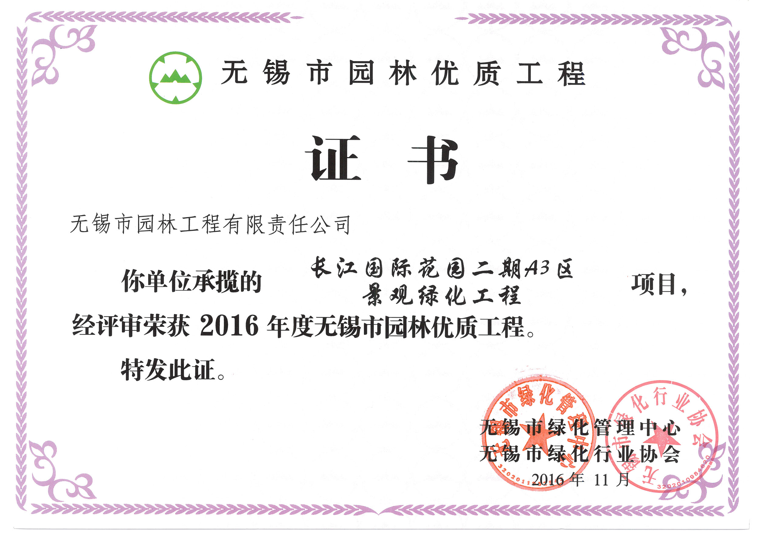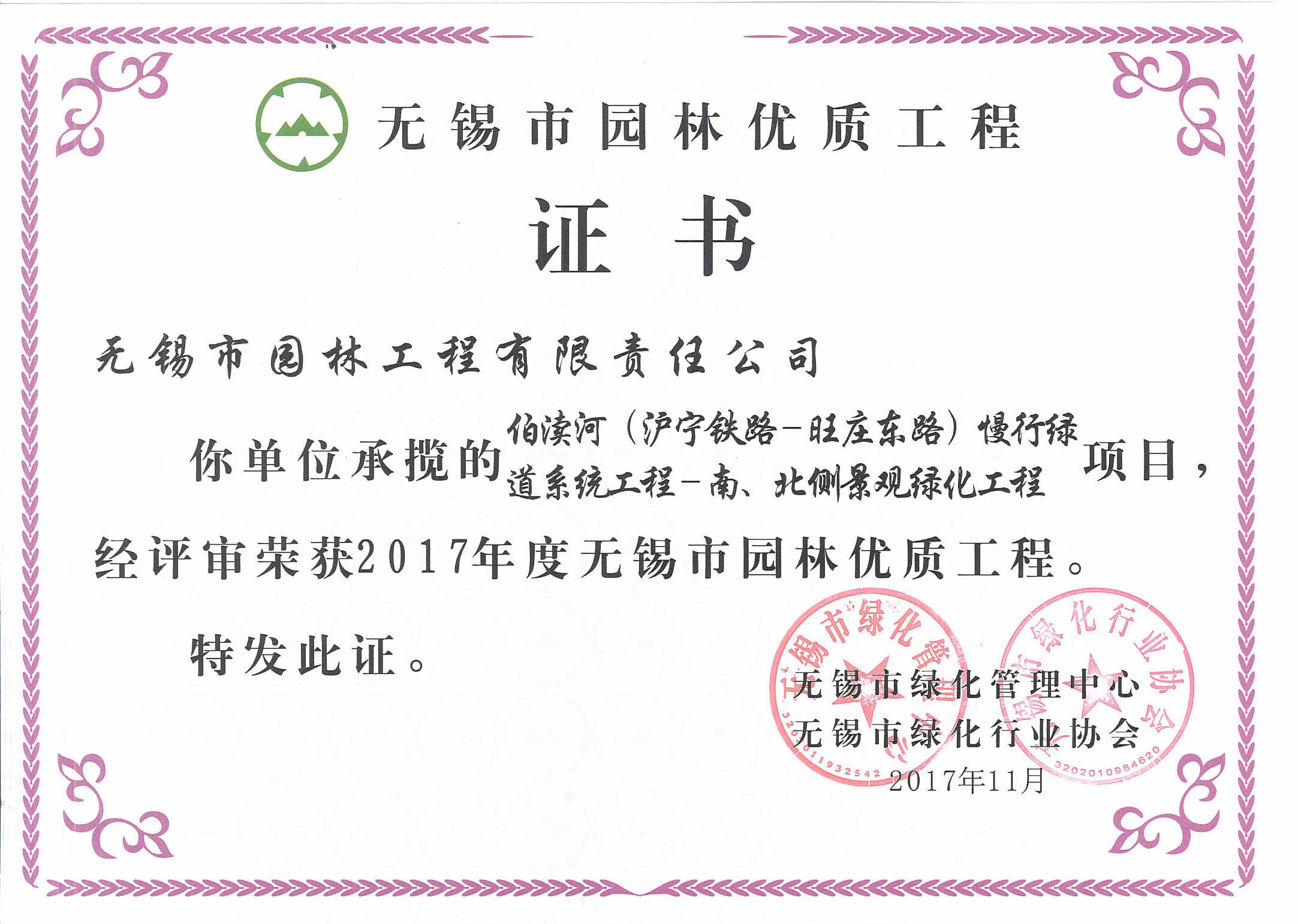 2016揚(yáng)子杯——無錫地鐵1號線沿線景觀綠化工程三標(biāo)