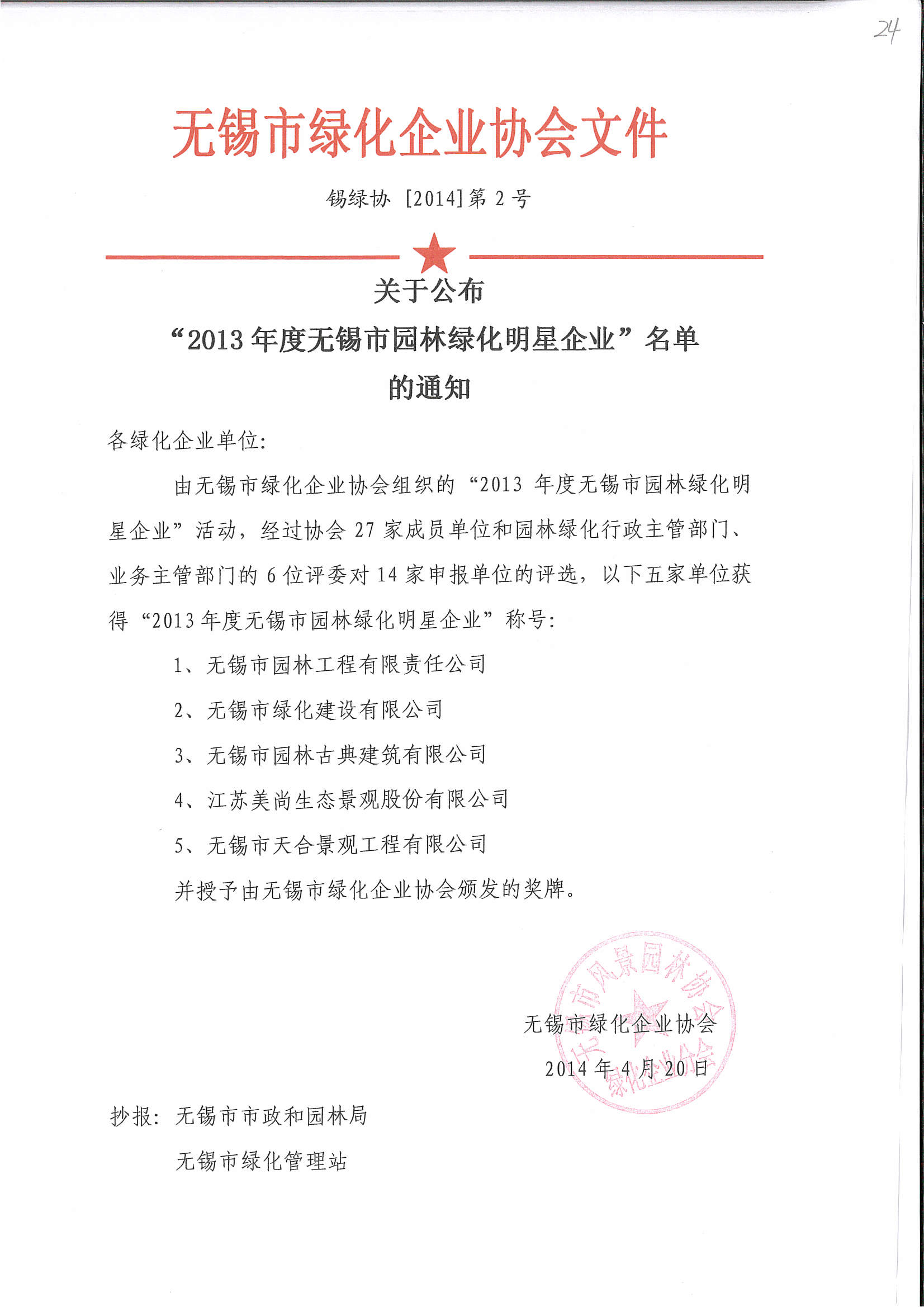 2013年度無錫市園林綠化明星企業(yè)