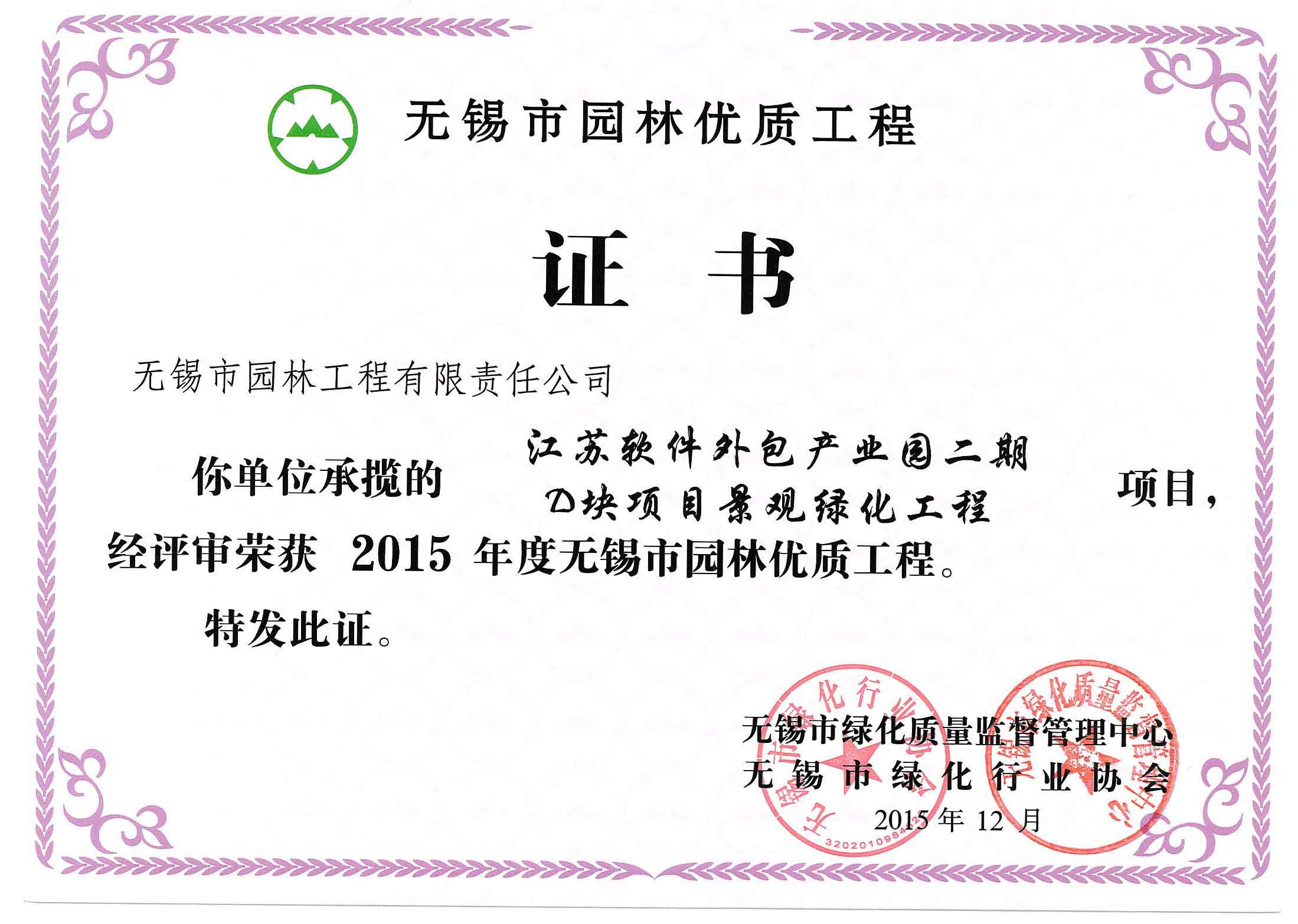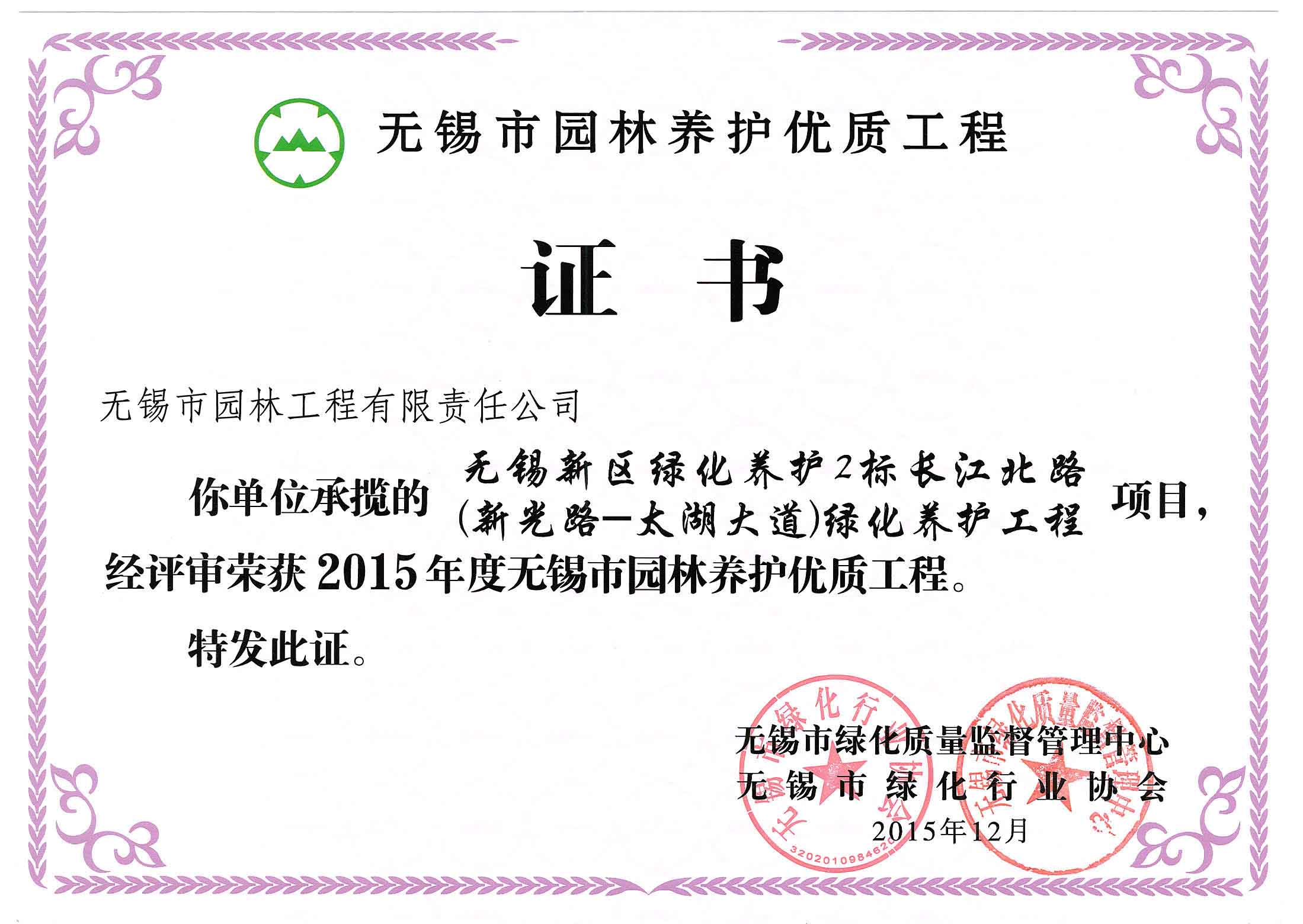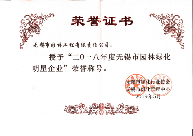2015年度無錫市園林綠化明星企業(yè)