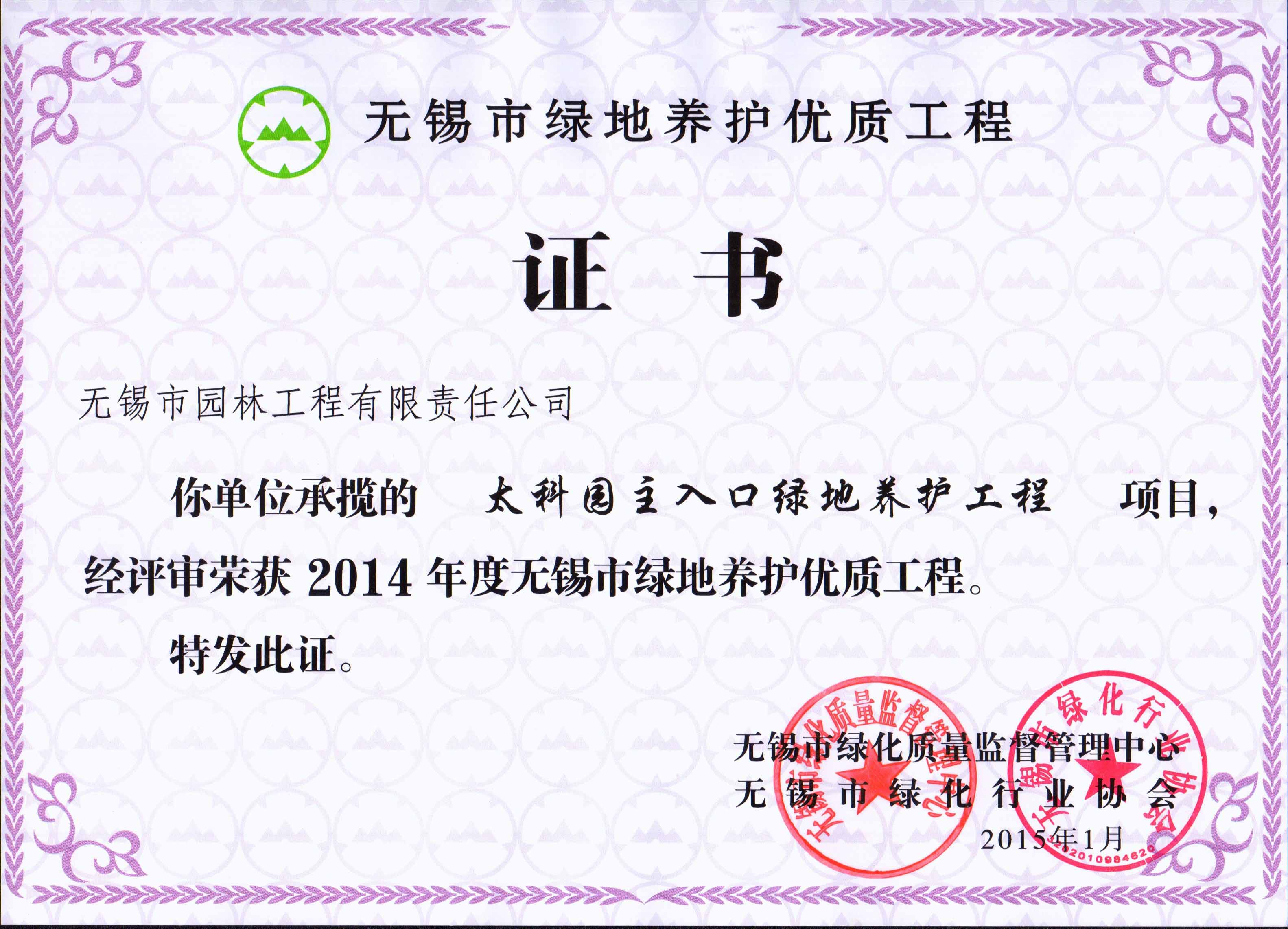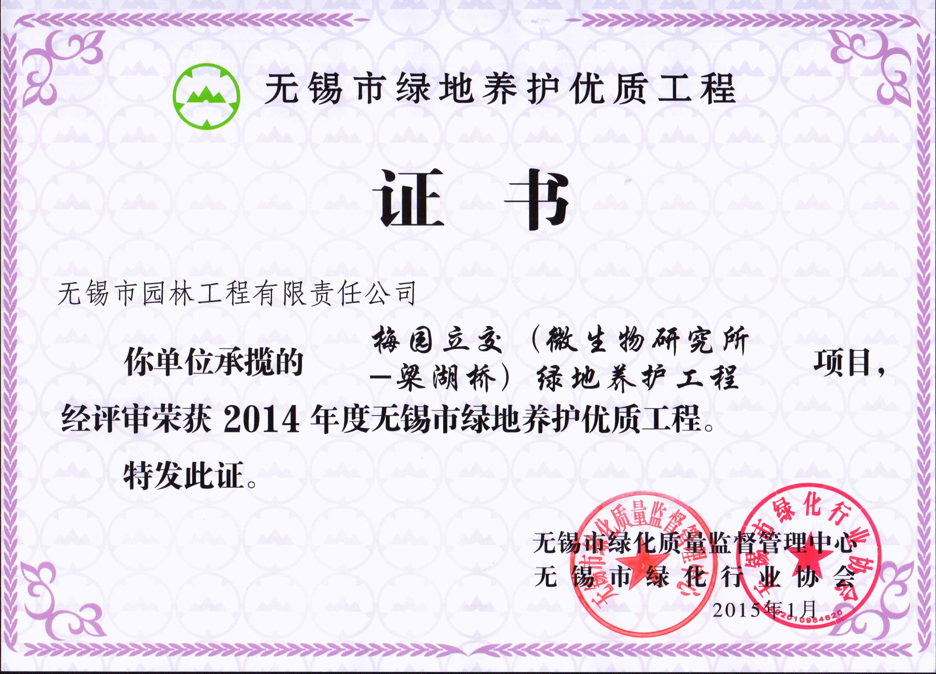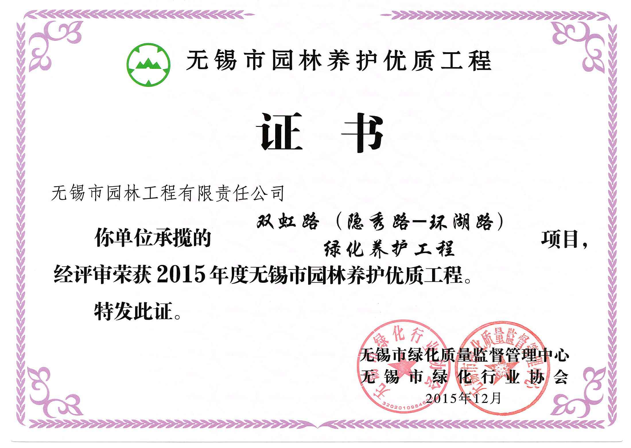 2015年度無錫市園林綠化明星企業(yè)