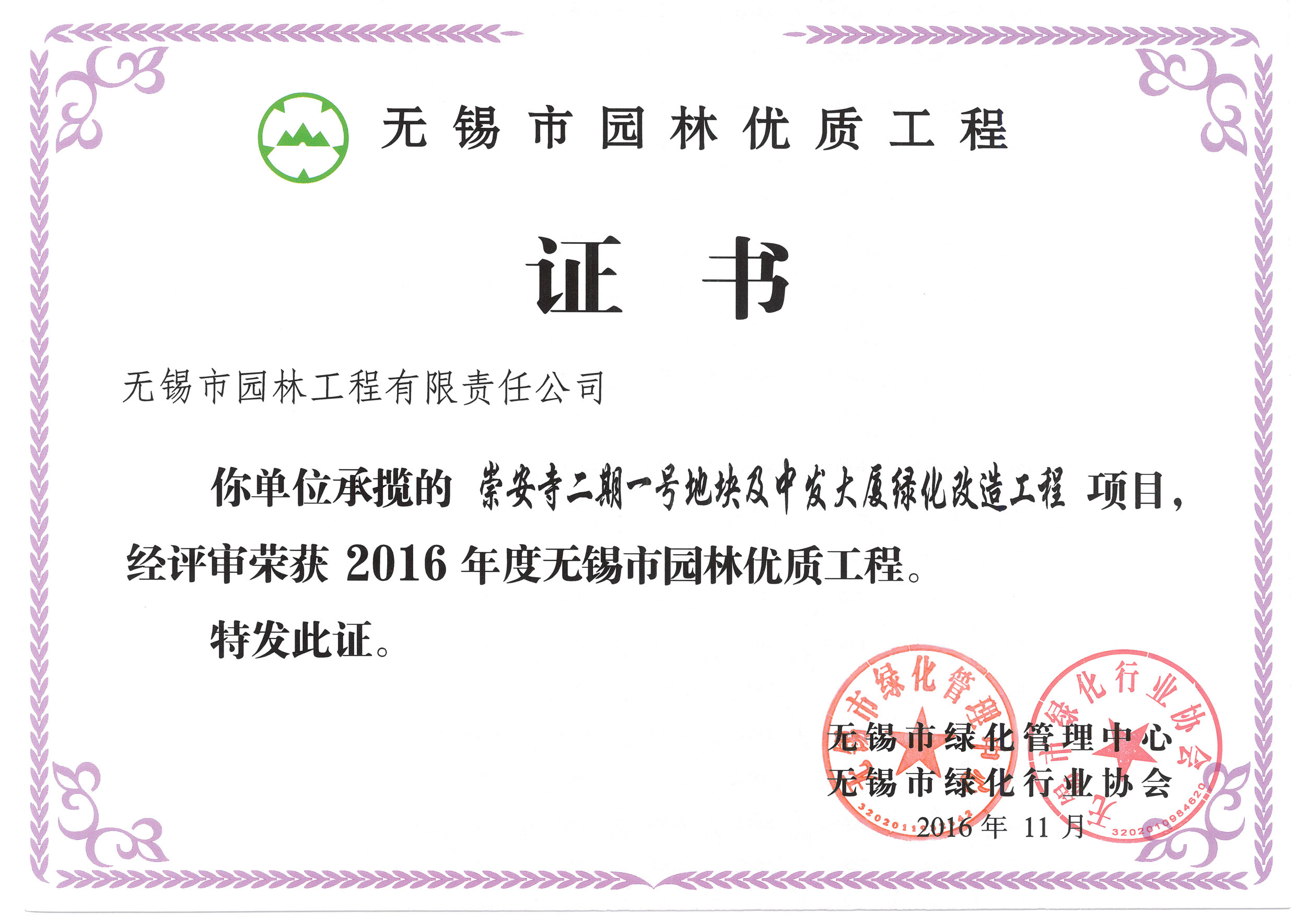 2017“揚(yáng)子杯”—崇安寺二期一號地塊及中發(fā)大廈地塊景觀綠化工程