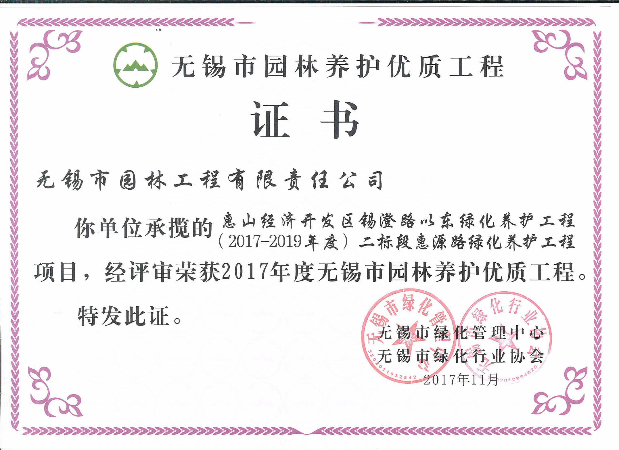 2017-2018無錫市綠化工作先進(jìn)單位